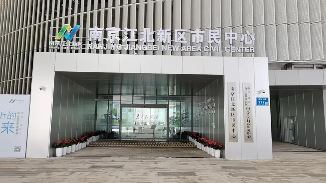 江北新区市民中心位于江北新区核心区,毗邻长江北岸,占地面积2.3万平方米,总建筑面积约7.5万平方米,是集城市展示、公共服务、市民活动、配套设施等为一体的多功能城市馆。一至三层为政务服务大厅,分为创业创新服务大厅、公安业务服务大厅、投资建设服务大厅、民生保障服务大厅、不动产服务大厅五块重点区域,为新区范围内的企业、群众提供全方位、全事项、全流程的服务,从而进一步提升企业群众的获得感和满意度。四至五层为新区规划展示馆。
